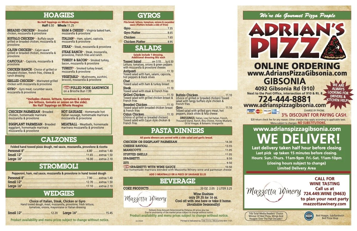 Click on the images to view our menu with current pricing.Please note: pricing is subject to change without notice.